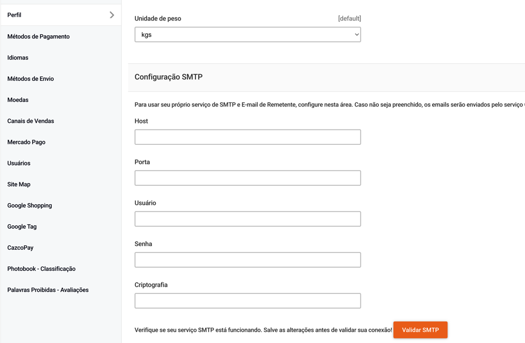 Onde configurar meu SMTP