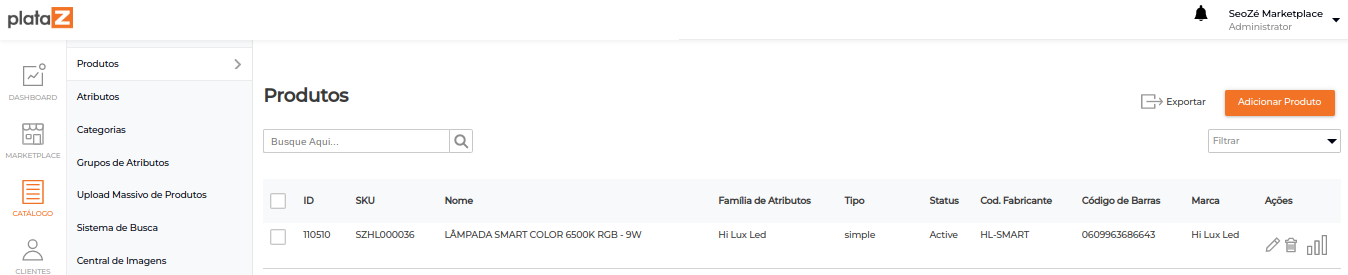 Identifique o produto no qual será inserido o HTML, clique no lápis à direita para fazer a modificação.