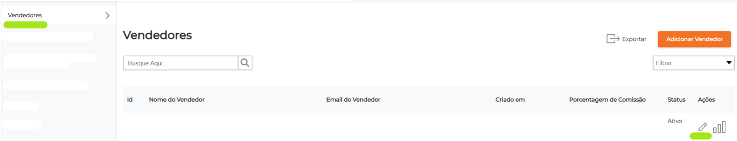 Siga os seguintes passos para realizar a ativação: Marketplace>Vendedores>Editar (lápis).